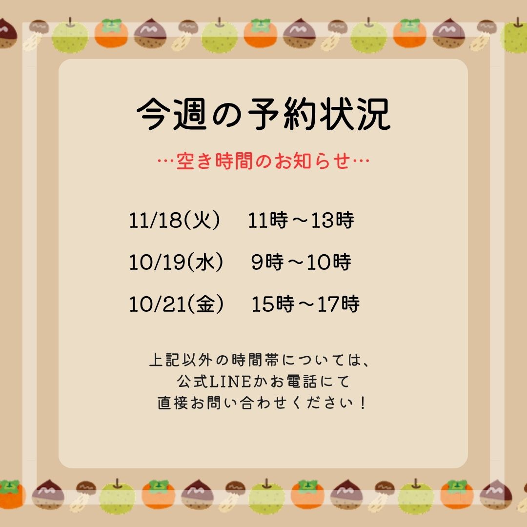 ※当日キャンセル等もありますので、下記日時以外にも空いている時間帯がございます。
