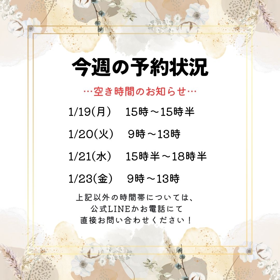 ※当日キャンセル等もありますので、下記日時以外にも空いている時間帯がございます。