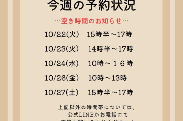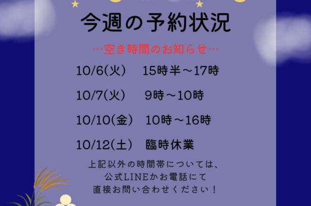 今週の予約状況≪10月6日~10月12日≫